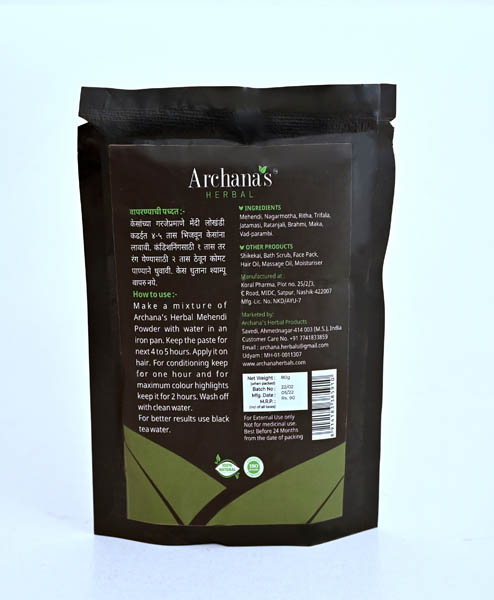 Mehendi, Nagarmotha, Jatamasi, Bramhi, Maka, Triphala, Vad Parambi, etc.